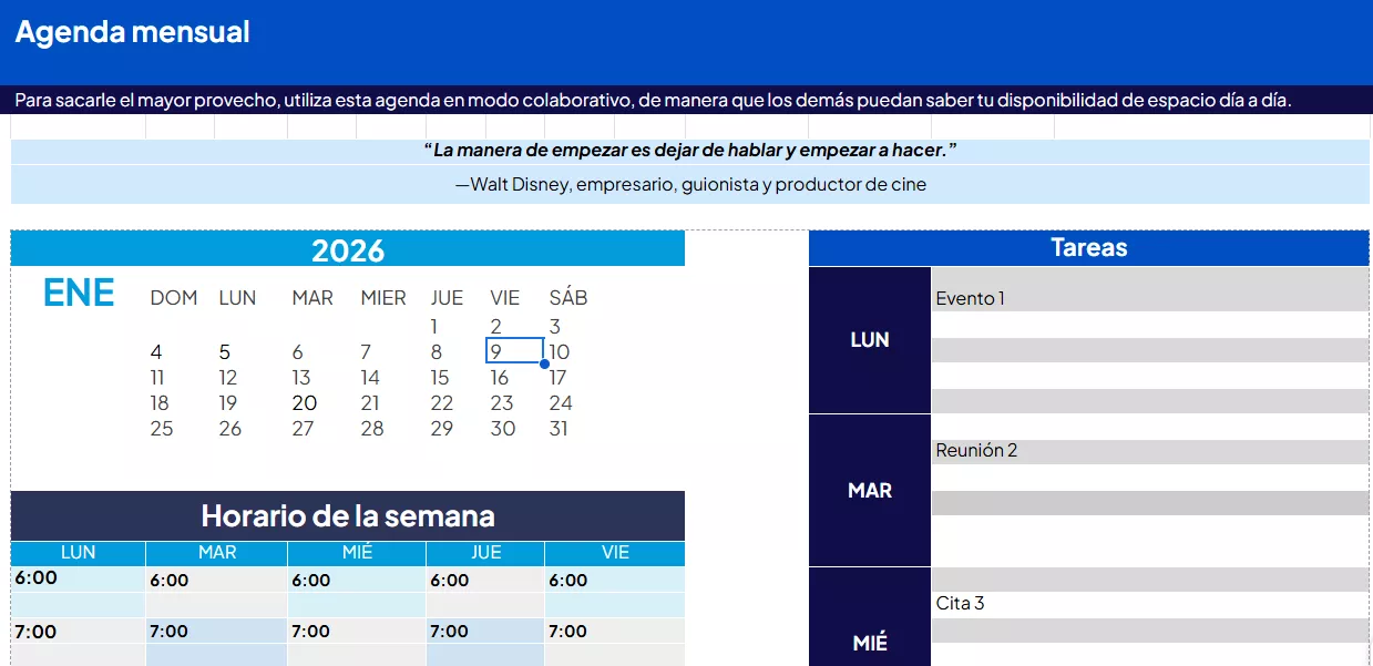 1. Agrega tus eventos semanales